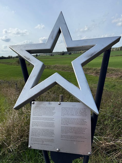 Next we had a stop at Schoonderlogt Farm (see top photo) and had a few minutes to view the memorial across the road: