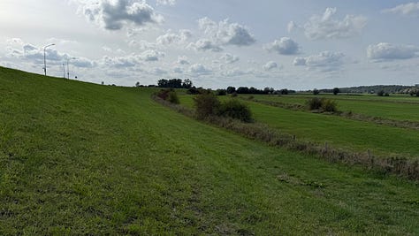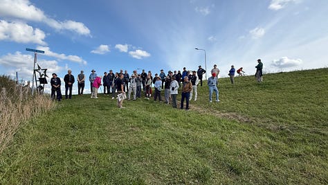Of course we had to visit the “Crossroads” on “the island” (the land between the branches of the Rhine river). This was the location for the famous battle between Easy Company and at least two companies of German soldiers, including many SS soldiers that happened on October 5, 1944 (see Steve’s write-up for tomorrow). Here are some photos from the “Crossroads” area on dikes running through the farmland (the re-creation of this area was extremely well-done in Band of Brothers):