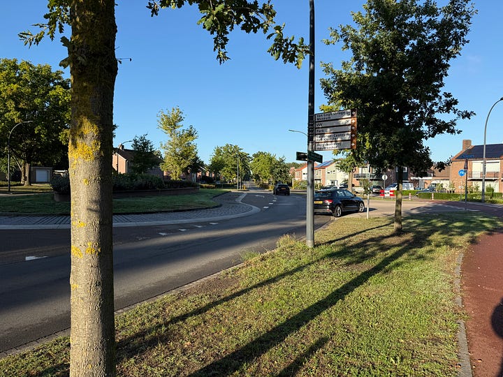 Our first stop was at a street corner in Nuenen, now a quiet suburb of Eindhoven. There are plaques there commemorating the battle that took place in this town after Eindhoven was liberated. In an interesting historical aside, Vincent Van Gogh lived and worked in Nuenen from 1883 to 1885. In the Band of Brothers episode “Replacements”, Private David Webster notes as they are approaching Nuenen that Van Gogh was born there and Private Cobb (a notorious smart Alec that nobody likes) replies “Yeah, so what?”. So Webster was wrong! Here is the Easy Company plaque and a memorial to the British tank unit at that street corner, a view looking towards the location of the main part of the battle in 1944 (it was mostly farmland and a few buildings) and our historical expert Edwin talking about the battle.