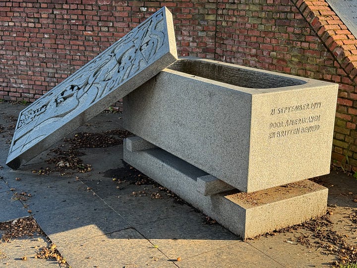 Ok, I’m done! Whew! You’re done, too, dear faithful readers (admit it), if you were able to slog your way through this mess. By the way, our historical guide today felt that Operation Market Garden was not really a failure! It did succeed in liberating the southern half of the Netherlands, saving millions of lives.